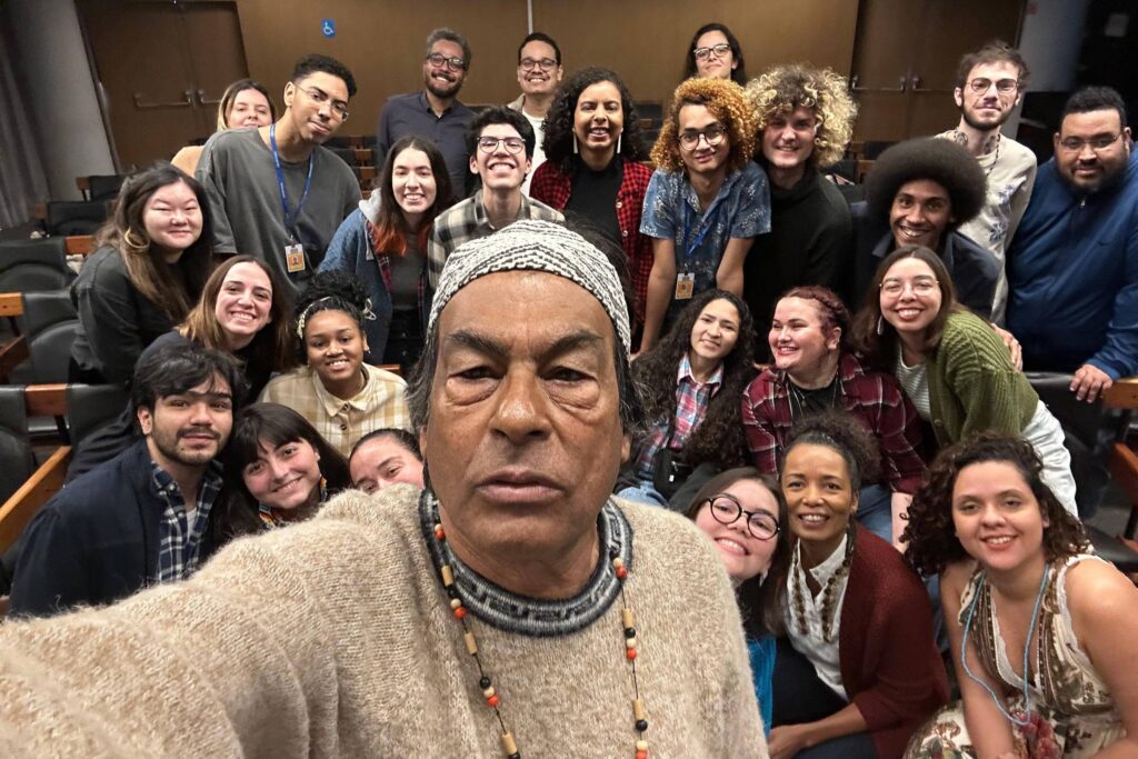 Entre todos os presentes, ninguém conseguia esconder a empolgação de conhecer o grande pensador da essência humana, em pleno feriado de Corpus Christi. É difícil pensar até por quais títulos podemos chamá-lo: ambientalista, filósofo, imortal da ABL, poeta. Krenak é tudo isso e mais um pouco —o que nos deixou muito felizes naquela manhã ensolarada.