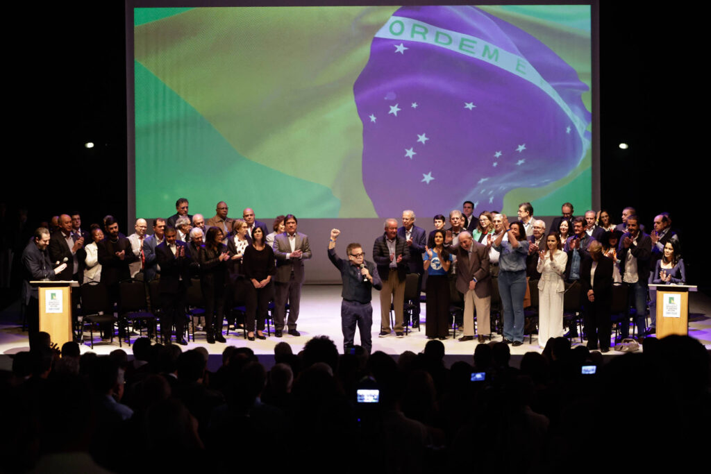 O ministro Gilmar Mendes, do STF, fez uma rápida aparição, enquanto integrantes do MDB e do PSDB, partidos que integram a base do governo Tarcísio de Freitas (Republicanos) em São Paulo, discursaram.