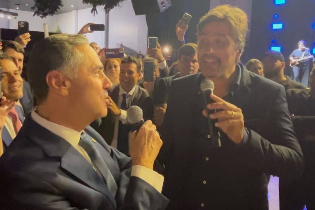 O presidente do STF, Luís Roberto Barroso, fez um dueto com o cantor sertanejo Leo Chaves em festa do presidente do Republicanos, Marcos Pereira, nesta quarta (23), em Brasília.