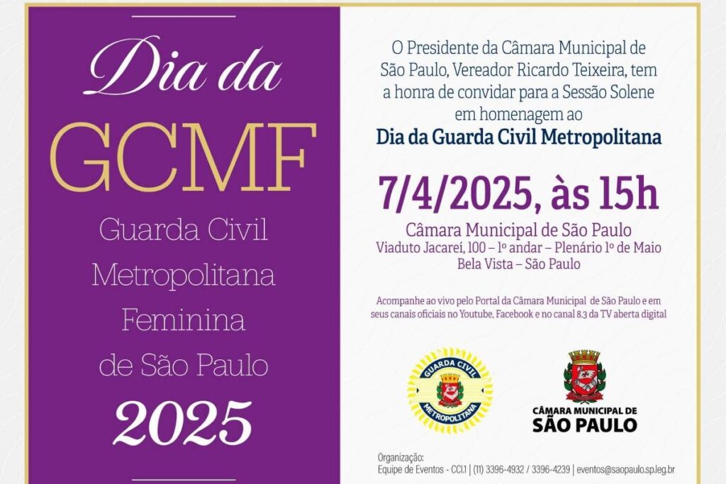 A sessão está agendada para às 15h e faz parte das comemorações do Dia da GCMF (Guarda Civil Metropolitana Feminina), celebrado em todo dia 5 de abril.