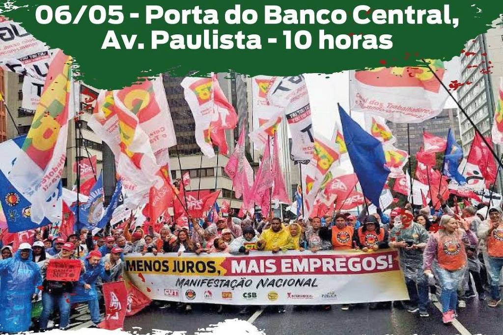 Insatisfeito com as decisões do Banco Central, sob presidência de Gabriel Galípolo, sindicalistas farão um protesto contra a alta da taxa de juros nesta terça-feira (6), às 10 h, na calçada do prédio do Banco Central na avenida Paulista.