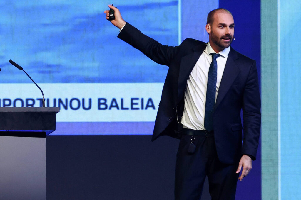 Eduardo e outros bolsonaristas tem buscado autoridades do governo Donald Trump visando uma sanção a membros do Supremo, incluindo Moraes, relator da ação penal da trama golpista de 2022, que tem como réus Jair Bolsonaro e militares de alta patente.