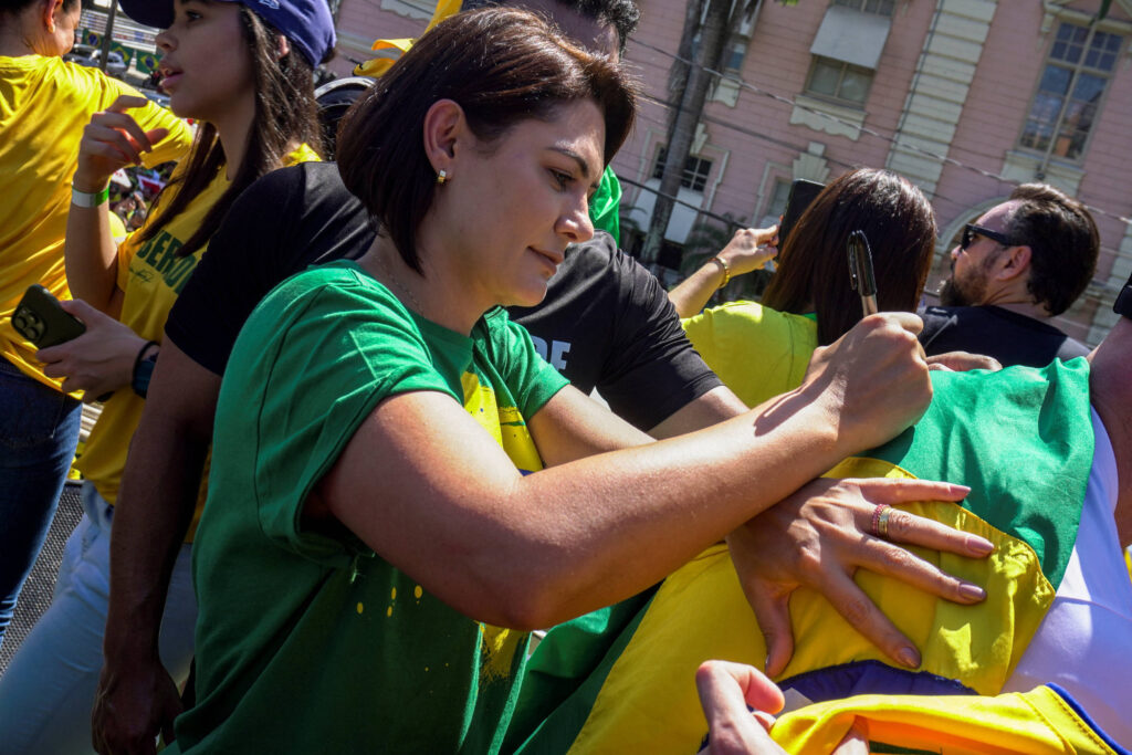 Neste domingo (3), Michelle participou de passeata no centro de Belém e disse que Bolsonaro é perseguido. A ex-primeira-dama pediu anistia aos presos pelos atos golpistas do 8 de Janeiro.