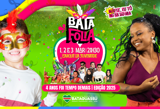 O Batafolia 2025 é uma iniciativa da Prefeitura Municipal de Bataguassu, com apoio do Governo do Estado do Mato Grosso do Sul, por meio da Fundação de Cultura, Deputado Estadual Pedro Caravina, Deputado Federal Beto Pereira e Senadora Soraya Thronicke. A festa valoriza a cultura e movimenta a economia local, trazendo um evento estruturado, seguro e acessível a todos. A expectativa é de que milhares de foliões marquem presença!
