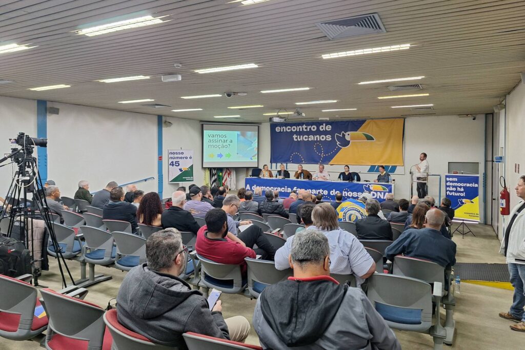 Ao menos 85 tucanos, os filiados, discutiram os rumos da sigla por cerca de três horas no auditório do Sindicato dos Engenheiros, na região central de São Paulo. Segundo os organizadores do evento, também foram 85 as assinaturas coletadas em uma moção com demandas à executiva nacional, que selará o futuro do partido em convenção marcada para o dia 5 de junho.